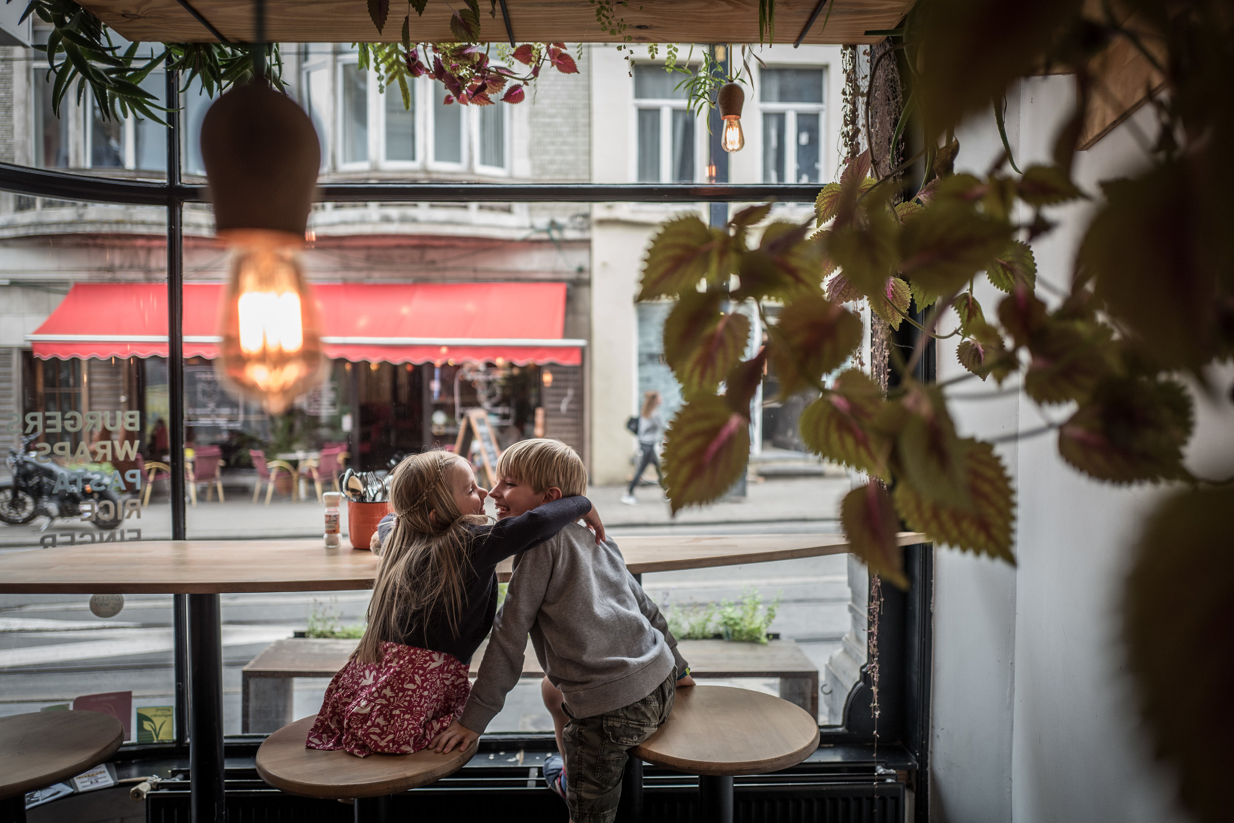 The following morning, we took the park and ride, as recommended by our Airbnb host. A short tram journey took us into the heart of the city, allowing us to discover a sense of the place along on the way. We jumped off the tram on Nederkouter, on the lookout for hip bakery and restaurant De Superette, where we had hoped to stop for lunch, only to find it had moved to a new premises on Guldenspoorstraat. This serendipitously lead us to discover Greenway, a pretty, down to earth vegan cafe across the street from De Superette’s old building. We ordered the BBQ black bean burger, that came with salsa, fried onions and ginger-lime aoili (hands down, the loveliest veggie burger I’ve ever tasted, and as a longtime vegetarian, I’ve tried a few), the “Meatlovers Favourite” a patty of red pepper and grilled vegetables that Isaac, our eight year old, wolfed down; a falafel wrap and the “mega-vega” Caesar salad. It was all superb. Our five year old, Sophia, however, was not in agreement and wouldn’t touch a morsel. Flying the flag for carnivores, she opted for a sausage in a bun in Würst, an upmarket hot dog joint next door.